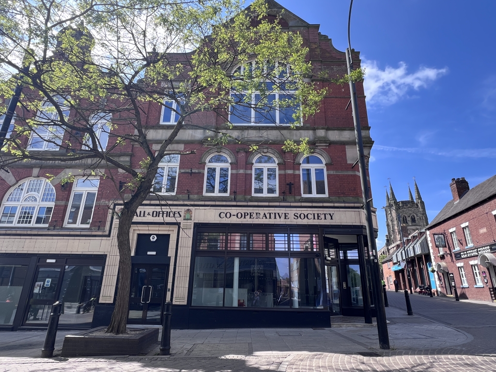 Following the success of the Philip Dix Tamworth Enterprise Centre, the locally listed Co-op building has been refurbished into a second enterprise centre for local business use, named the Elizabeth Bradford Business Centre.